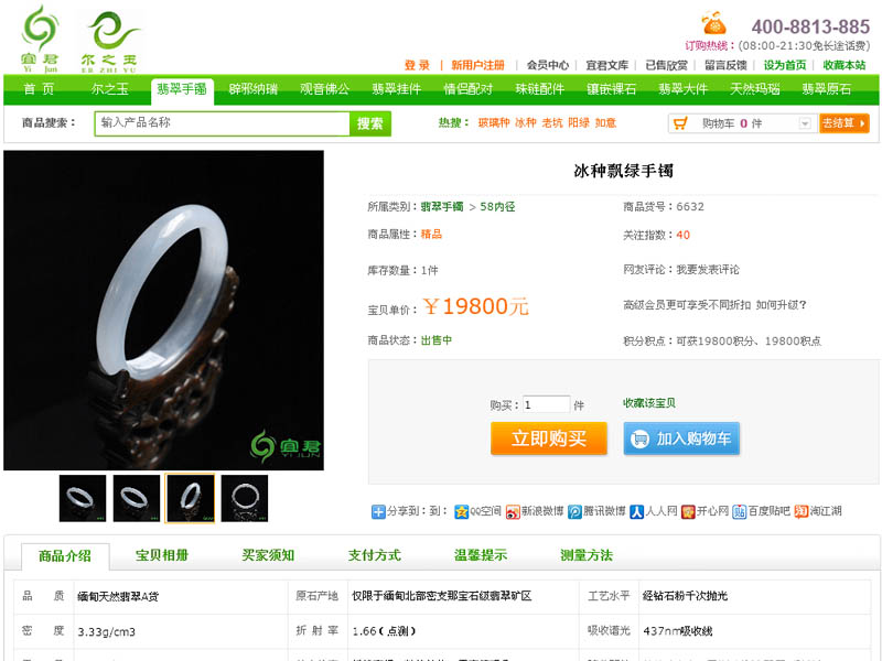 宜君翡翠是南通宜君珠宝旗下的珠宝商(shāng)城网站,网站提供公司所售的商(shāng)品展示,可(kě)通过支付宝担保付款在線(xiàn)購(gòu)买。