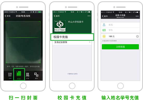 校园一卡通充值,通过微信扫一扫封面為(wèi)固定入口,扫描校园卡,结合公众号支付,随时随地给校园卡充值,再无需排队等候