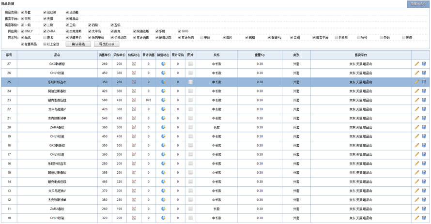 玲珑《電(diàn)商(shāng)业務(wù)数据统计系统》是针对電(diàn)商(shāng)卖家多(duō)渠道进货并且在多(duō)个電(diàn)商(shāng)平台进行进销存管理(lǐ)的辅助软件。现在各家電(diàn)商(shāng)平台对于卖家所提供的进销存管理(lǐ)服務(wù)其实是很(hěn)完善的,但对于在多(duō)个電(diàn)商(shāng)平台从事销售业務(wù)的卖家,由于各平台之间的数据无法共享,货品与销售的统一管理(lǐ)成為(wèi)烦人的问题,很(hěn)多(duō)卖家会选择第三方进销存软件来进行辅助管理(lǐ),玲珑《電(diàn)商(shāng)业務(wù)数据统计系统》具有(yǒu)完善的进销存管理(lǐ)功能(néng),特别是在货品管理(lǐ)、销售管理(lǐ)、操作用(yòng)户等模块,针对電(diàn)商(shāng)的经营特点,做了有(yǒu)别于传统进销存软件的设计,可(kě)成為(wèi)電(diàn)商(shāng)卖家的有(yǒu)力助手。